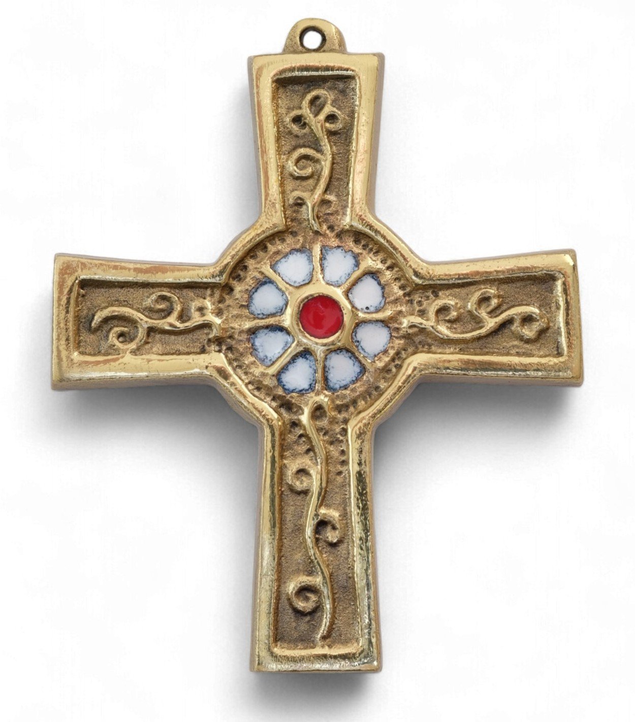 Croix murale médiévale avec rosace et émaux - 10 cm - 891
