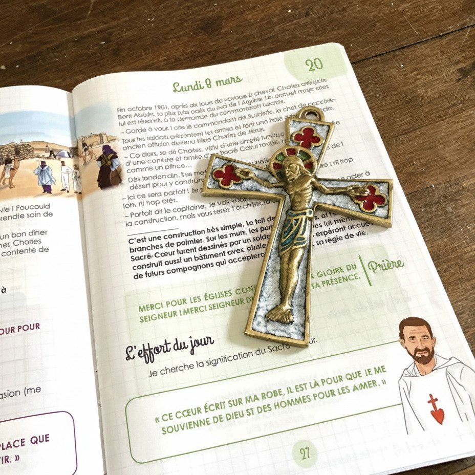 Ce crucifix est réalisé en bronze véritable et orné de cinq teintes d’émaux grand feu – ou émaux limousins – et cette très riche ornementation contribue à lui conférer un aspect très décoratif. La cuisson à très haute température dans les fours de nos ateliers de Villefagnan en Charente, réalisée selon les techniques mêmes du Moyen-Age, confère à ces émaux une profondeur de teinte qui ne s’altèrera pas dans le temps et permet une parfaite adhérence des pâtes émaillées ainsi vitrifiées au bronze (les émaux ne pourront pas se détacher par accident).